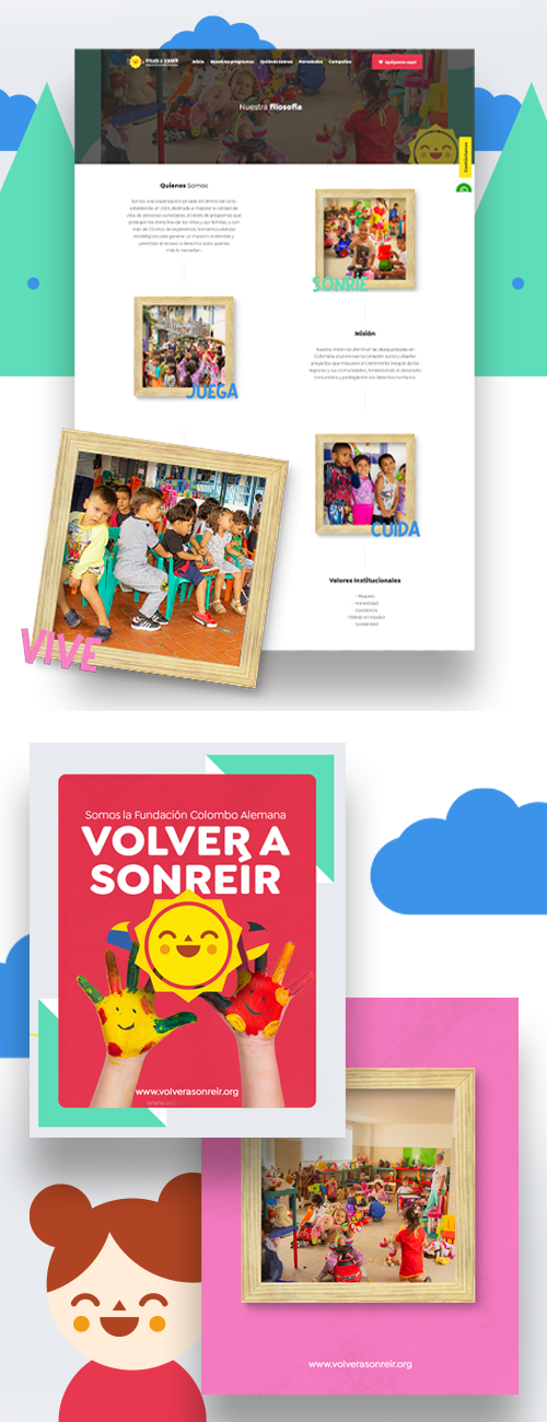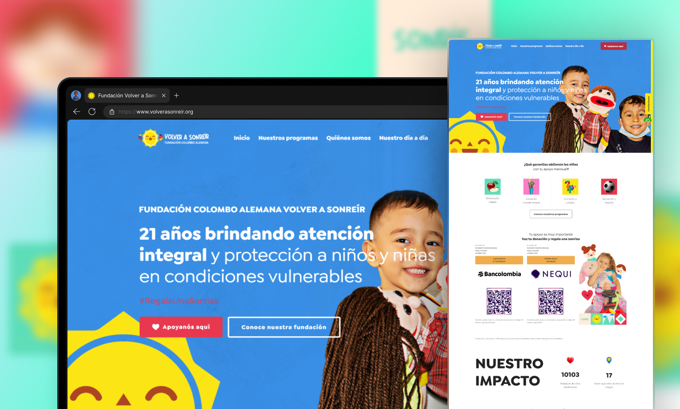Fundación Volver a Sonreír es una organización sin ánimo de lucro, fundada en 2001, dedicada a mejorar la calidad de vida de personas vulnerables. A través de programas de protección de derechos para niños y sus familias, y con más de 20 años de experiencia, trabaja en alianza con distintos actores para generar impacto social sostenible.